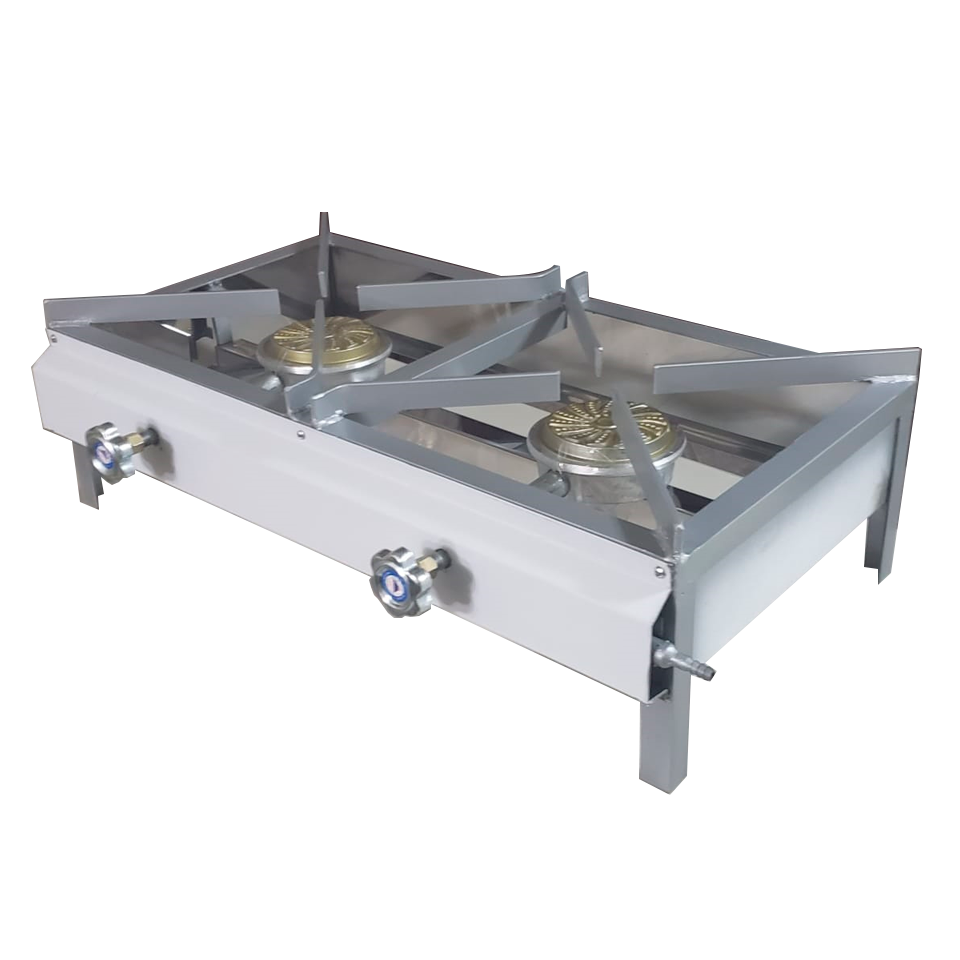 Cocineta de 2 quemadores en acero inoxidable 0.4mm. Dimensiones: 68,5cm x 35cm x 21cm.