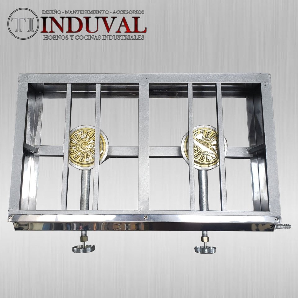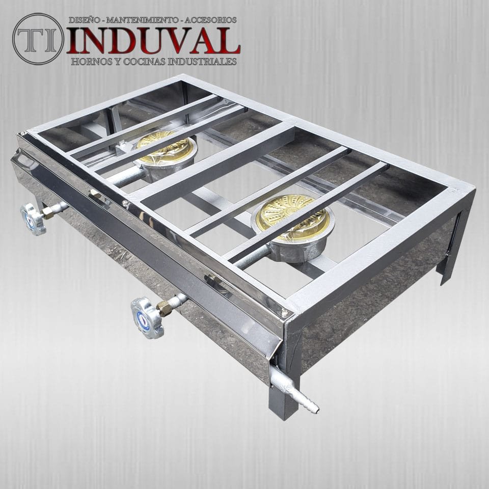 Cocineta de 2 quemadores en acero inoxidable 0.4mm. Dimensiones: 60cm x 35cm x 16cm.